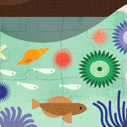Podmorské puzzle má 49 dielikov a je obojstranné. Koľko živočíchov dokážete rozpoznať? Obojstranné puzzle má 2 unikátne designy, dvojitá zábava! Puzzle je zabalené vo vrecúšku s pútkom z látky zo 100% recyklovaného polyesteru. Je tak vhodné aj na cesty. Puzzle z FSC papiera je vytlačené farbami vyrobenými zo zeleniny. Hlavné vlastnosti: obojstranné puzzle zabalené v eko vrecúšku s pútkom puzzle natlačené prírodnými farbami vhodné na doma aj na cesty balené bez použitia plastu vhodné od 5 rokov Značka a certifikát FSC® (Forest Stewardship Council) zaručuje, že drevo, z ktorého bol produkt vyrobený, nebolo vyťažené nelegálne pochádza z lesov obhospodarovaných šetrným či prírode blízkym spôsobom, v ktorom sú dodržiavané prísne environmentálne a sociálne požiadavky. Značka FSC® na výrobku znamená, že svojim nákupom pomáhate chrániť lesy a podporujete šetrné, zodpovedné či prírode blízke hospodárenie, vďaka ktorému sú naše lesy stabilnejšie, zdravšie, majú prirodzenú druhovú skladbu a lepšie odolávajú negatívnym následkom klimatických zmien.