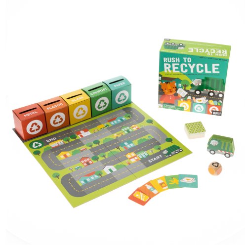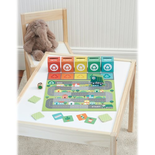Recyklácia nikdy nebola zábavná tak, ako s touto cenami ovenčenou hrou. Kov, sklo alebo papier? Trieďte, kým si pre nich prídu! Hrajte spolu alebo proti sebe a rozvíjajte ekologické cítenie detí. Hra je vhodná pre deti od 4 do 8 rokov a je možné u nej stráviť priemerne 15 minút. Je vyrobená z recyklovaných materiálov potlačených nezávadnými rastlinnými atramentmi. Hlavné vlastnosti: herný plán, 5 kontajnerov, kartičky, kocka a nákladiak Ocenenie hračky: National Parenting Product Award 2021 PureWow's Happy Kid Award 2021