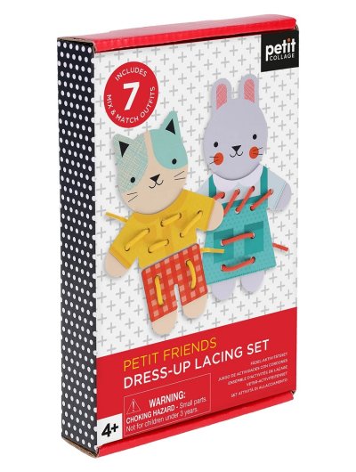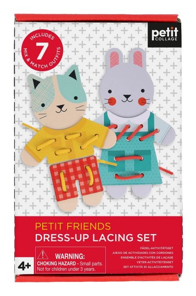 Roztomilá prevliekacia hra v ktorej sú 2 zvierací kamaráti obliekaní do odlišných kusov oblečenia. Hodiny zábavy pri kombinovaní deťom ponúkajú posun v ich predstavivosti. Práca s niťou naopak umožňuje aj tým najmladším získať počiatočné skúsenosti s rôznymi vzormi stehov. Sada sa skladá z kocúra, zajačika, 2 nití a 7 outfitov. Rozvíja ďalej obratnosť, koordináciu ruka/oko a pomáha sa pripraviť na zaväzovanie šnúrok . Hlavné vlastnosti: obsahuje 2 zvieratká, 2 nite a 7 rôznych outfitov rozvíja obratnosť a koordináciu ruka-okotrénuje kreativitu, trpezlivosť a jemnú motoriku Značka a certifikát FSC® (Forest Stewardship Council) zaručuje, že drevo, z ktorého bol produkt vyrobený, nebolo vyťažené nelegálne a pochádza z lesov obhospodarovaných šetrným či prírode blízkym spôsobom, v ktorom sú dodržiavané prísne environmentálne a sociálne požiadavky. Značka FSC® na výrobku znamená, že svojim nákupom pomáhate chrániť lesy a podporujete šetrné, zodpovedné či prírode blízke hospodárenie, vďaka ktorému sú naše lesy stabilnejšie, zdravšie, majú prirodzenú druhovú skladbu a lepšie odolávajú negatívnym následkom klimatických zmien.