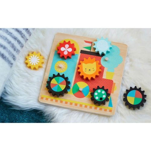 Klasické puzzle s ozubenými kolieskami. Preskúmajte možné kombinácie a usporiadajte robustné a pútavo vyvedené kolieska správne. Dieťa pri hre rozvíja logiku, jemnú motoriku, koordináciu a rozpoznávanie farieb. Hlavné vlastnosti: základňa a 7 koliesok