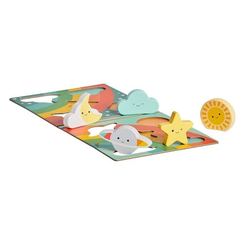 Robustné drevené puzzle. Hlavné vlastnosti: 5 drevených dielikov2 hracie scényVhodné pre deti od 18 mesiacov