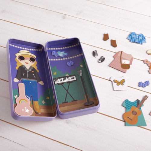 Poškodená kovová krabič ka. Kreatívne . Smelá. Vynaliezavá. Použite magnetické dieliky na vytvorenie vlastnej muzikantky a koncertného pódia. Každý môže mať veľké sny, ktoré sú s dostatkom usilovnosti splniteľné. Hlavné vlastnosti: Inšpiruje mladých umelcov, aby si šli za svojou vášňouObsahuje obrázok mladej muzikantky s magnetickými doplnkamiObsahuje dve koncertné scény