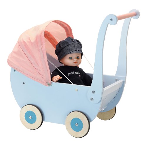 Malé mamičky teraz môžu svoje bábiky zviezť v štýlovom, elegantnom, ale aj priestrannom kočíku vo farbách Petitcollin. Je vybavený praktickou sklápacou strieškou, opečovávanému bábätku tak za priaznivého počasia nebude nič brániť vo výhľade a vnútorný priestor bude vždy ľahko dostupný. Kolesá sú vybavené gumovými návlekmi, kočík sa preto pohybuje ticho na všetkých typoch povrchov. Svojou decentnou farebnosťou využívajúcou odtiene modrej a ružovej vkusne doplnia ďalšie z radu príslušenstva Petitcollin. Je dodávaný už z väčšej časti zostavený a po jednoduchej montáži madla pripravený na jazdu. Hlavné vlastnosti: sklápací strieškatichý a kultivovaný chodatraktívne drevené spracovanie