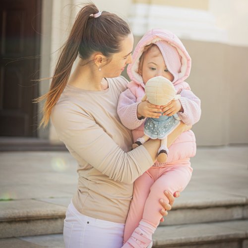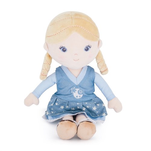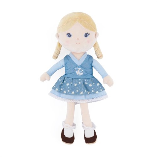 Bábika je vyrobená z veľmi príjemného materiálu s krásnymi šatami, dokonale upravenými zlatými vrkôčikmi. Pokiaľ sa zašpiní, môžete ju jednoducho ručne vyprať pri teplote 30°. Vďaka rôznym tvarom a textúram podporuje u detí predstavivosť a fantáziu a rozvíja poznávacie schopnosti.