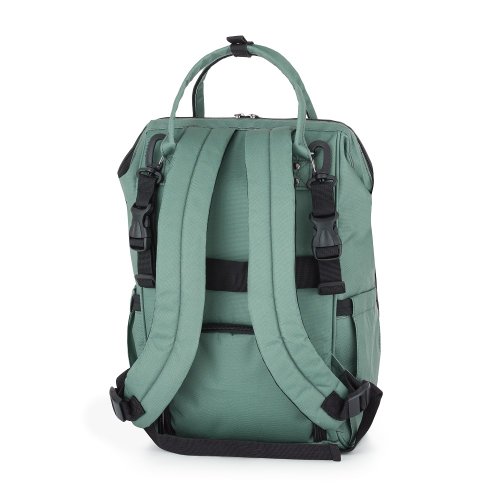 Tento pohodlný a organizačne premyslený plecniak je vyrobený z kvalitných materiálov odolných voči vlhkosti. Má bočné popruhy na pripevnenie ku kočíku a hlavná priehradka sa zapína na dvojcestný zips. Veľké množstvo vreciek vrátane funkčných vreciek a ľahký prístup k obsahu vďaka bočnému otváraniu vám výrazne uľahčí balenie na výlet alebo prechádzku.