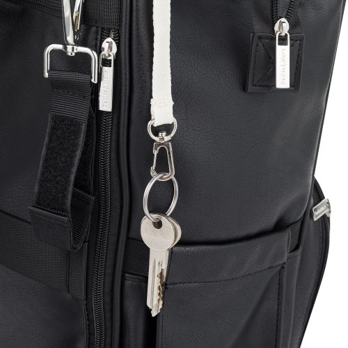 Priestranná hlavná priehradka, zapínaná na obojsmerný zips, sa doširoka otvára pre ľahký prístup ku všetkým veciam, ktoré potrebujete. Batoh má dvanásť funkčných vreciek vrátane vyhradeného vrecka na tablet alebo vlhčené obrúsky, zateplené vrecká, vodotesné vrecká na mokré veci a priestoru na fľaše a kľúče.
