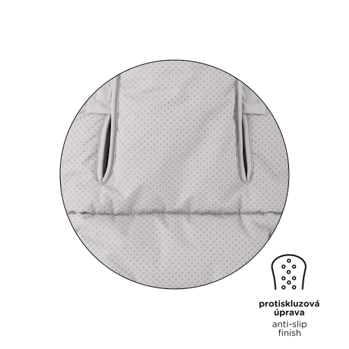 • Protišmykový povrch na zadnej strane (ABS) zabraňuje skĺznutiu dieťaťa v kočíku.