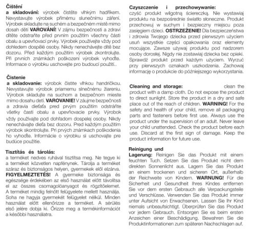 UPOZORNENIE V záujme bezpečnosti a zdravia dieťaťa pred prvým použitím odstráňte všetky časti obalu a upevňovacie prvky. Výrobok používajte vždy pod dohľadom dospelej osoby. Nikdy nenechávajte dieťa bez dozoru. Pred každým použitím výrobok skontrolujte. Pri prvých známkach poškodenia ho prestaňte používať. Informácie o výrobku si uschovajte pre budúce použitie.