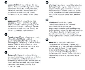 UPOZORNENIE Nikdy nenechávajte dieťa bez dozoru. Pred podaním hračky vášmu dieťaťu odstráňte a zlikvidujte všetky obaly. Informácie uschovajte. Skontrolujte kvalitu hračky pre každým použitím.
