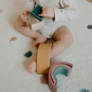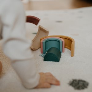 Mäkké silikónové prvky sú vyrobené výhradne z potravinárskeho silikónu bez obsahu BPA. Najkvalitnejšie, odolné materiály, dôraz na detail a starostlivo vybrané veľkosti oblúkov umožňujú dieťaťu hrať sa bezpečne a stimulovať jeho vývoj.