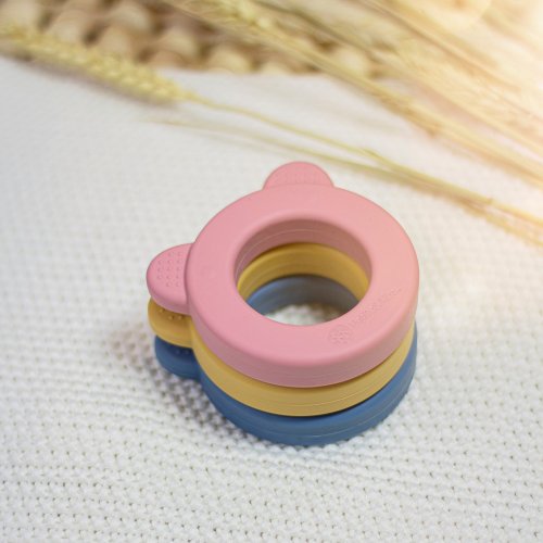Silikónové hryzátko BEARY Mäkké silikónové hryzátko je celé vyrobené z potravinárskeho silikónu bez BPA. hryzenie hryzátka sa jemne masírujú ďasná. Hryzátko sa dá schladiť v chladničke a dať dieťatku studené. Rôzne povrchy hryzátka stimulujú správny vývoj čeľuste. hryzátka umožňuje dieťatku ľahké uchopenie a vynikajúcu, bezpečnú hru, ktorá stimuluje jeho vývoj.