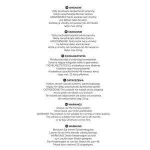 Čistenie a údržba: Pokiaľ bol podvozok kočíka vystavený slanej vode, čo najskôr ho opláchnite vodou. Produkt čistite pomocou handričky a jemných čistiacich prostriedkov. Poťah sedadla je možné vyprať pri teplote 30 °C. Produkt neskladajte ani neukladajte, keď je mokrý, ani ho neskladujte vo vlhkých podmienkach.