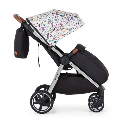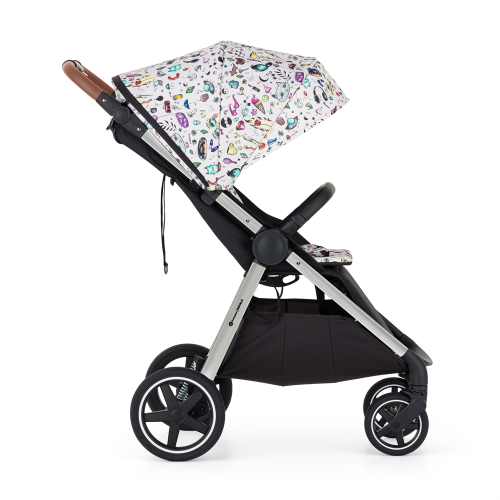 Balenie obsahuje: • Konštrukciu kočíka v striebornej farbe s madlom a rukoväťou v hnedej eko-koži • Predné a zadné celogumové kolieska • Poťah sedadla • Prebaľovaciu tašku • Čierny nánožník • Striešku • Vložku do kočíka vo farbe striešky • Polstrovanie – set