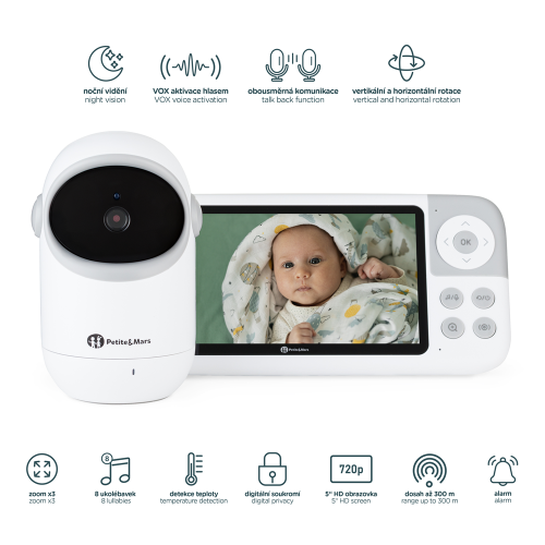 Opatrovateľka je vybavená kamerou s možnosťou diaľkového ovládania, takže máte obraz neustále pod kontrolou – nech sa dieťa pohne kamkoľvek. Systém je možné rozšíriť až na 4 kamery, čo z neho robí ideálne riešenie pre viac miestností alebo viacerých detí. Funkcia alarmu slúži ako časovač či pripomienka - napríklad na kŕmenie, prebalenie alebo kontrolu bábätka. Navyše táto detská pestúnka ponúka mnoho funkcií, ktoré uľahčujú každodennú starostlivosť.