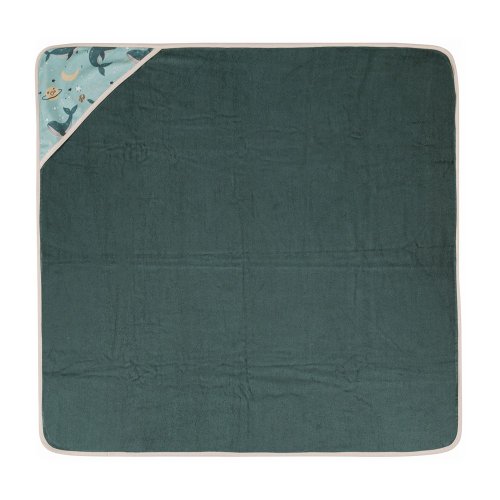 PETITE&MARS Osuška bambusová s kapucňou Loulou Whale Song 100 x 100 cm