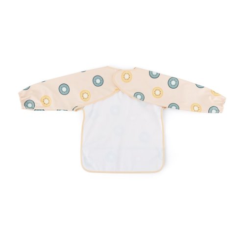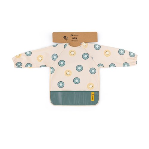 Pohodlný, nepremokavý podbradník s dlhým rukávom je vyrobený z rýchloschnúceho, bezpečného PU materiálu, úplne bez PVC a ftalátov. Predné vrecko na omrvinky zaistí poriadok a pohodlie pri kŕmení a dlhé rukávy s gumičkou chránia oblečenie pred zašpinením a namočením. Podbradník je veľmi jemný na dotyk a zapína sa na mäkký suchý zips. Možno ho používať nielen pri jedle, ale aj pri výtvarných prácach. Ak ho chcete udržať v čistote, po použití ho jednoducho utrite vlhkou handričkou.