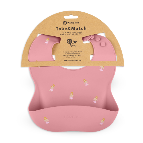 TAKE&MATCH silikónový podbradník Silikónový podbradník SAM s vreckom na zachytávanie zvyškov je nevyhnutným pomocníkom pri prvých príkrmoch vášho dieťaťa. Poskytuje pohodlie a istotu počas kŕmenia a zároveň pomáha udržiavať čistotu počas jedla. Ide o riešenie, ktoré rodičom uľahčuje život a prináša pohodlie pri kŕmení najmenších.