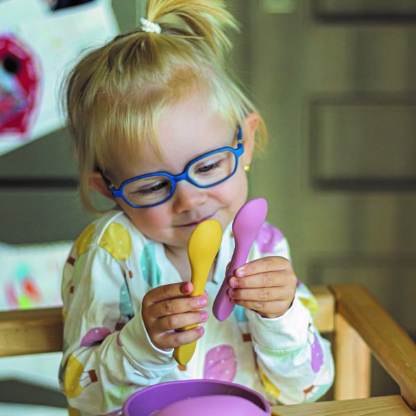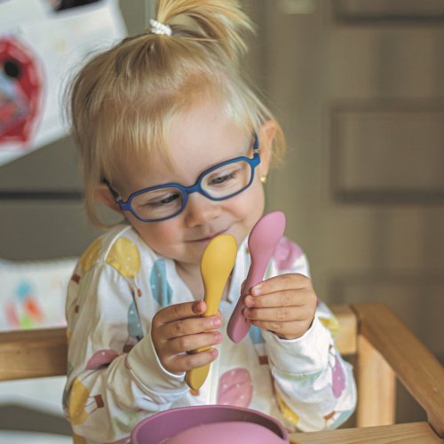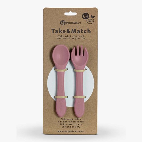 TAKE&MATCH séria TAKE what you need and MATCH as you like. Vyberte si výrobky, ktoré vaše dieťa potrebuje, a zlaďte ich farebne podľa svojich predstáv. Jedálenské sety sú k dispozícii vo farbách inšpirovaných najnovšími trendmi a skomponované tak, aby každá farba dokonale ladila s ostatnými. Môžete preto ľubovoľne kombinovať všetky prvky potrebné na prípravu bezpečného jedla pre vaše dieťa a vytvoriť si tak vlastnú jedinečnú kolekciu. Vďaka našej sérii sa kŕmenie vášho dieťaťa stane nielen veľmi jednoduchým, ale aj estetickým a príjemným. Silikónový príbor TAKE&MATCH Súprava pozostávajúca z vidličky a lyžičky je celá vyrobená z potravinárskeho silikónu bez obsahu BPA. Vďaka tomu môže vaše dieťa jesť príborom teplé aj studené jedlá. Vďaka pružnému silikónu je príbor ideálny pre citlivé ďasná malého dieťaťa. Príbor je vhodný pre deti od 6 mesiacov, ktoré sa zoznamujú s pestrou stravou, a pre tie, ktoré sa už úspešne učia jesť samy. Zaoblené tvary a malé rozmery uľahčujú dieťatku ich uchopenie a tým aj papanie. Príbor je možné zladiť s iným výrobkom z radu TAKE&MATCH v rovnakej alebo hodiacej sa farbe.