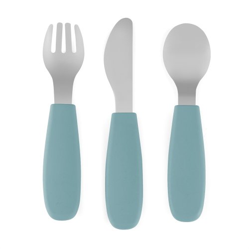 Funkčné časti sú vyrobené z vysoko kvalitnej nerezovej ocele, zatiaľ čo ergonomické rukoväte sú potiahnuté mäkkým silikónom vhodným na styk s potravinami, prispôsobeným malým detským ručičkám. Vďaka tomu je úchop pohodlný a bezpečný, čo pomáha rozvíjať správne návyky pri jedle.