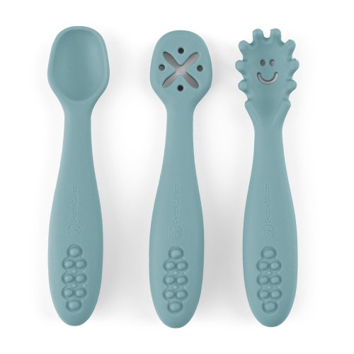 Séria TAKE&MATCH TAKE, čo potrebujete a MATCH as you like. Vyberte si výrobky, ktoré vaše dieťa potrebuje, a zlaďte ich farebne podľa svojich predstáv. Jedálenské sety sú k dispozícii vo farbách inšpirovaných najnovšími trendmi a zostavené tak, aby každá farba dokonale ladila s ostatnými. Môžete teda ľubovoľne kombinovať všetky druhy výrobkov na bezpečné papanie vášho dieťatka a vytvoriť si tak vlastnú jedinečnú kolekciu. Vďaka našej sérii sa kŕmenie vášho dieťaťa stane nielen veľmi jednoduchým, ale aj estetickým a príjemným. TAKE&MATCH silikónové tréningové lyžičky sada 3 ks Tréningový set pozostávajúci z troch lyžičiek umožňuje vášmu dieťatku objaviť radosť z jedla. Každá lyžička je starostlivo navrhnutá tak, aby sa papanie stalo zážitkom. Set obsahuje polievkovú lyžičku, lyžičku s výstupkami pre ľahké uchopenie cestovín a lyžičku na namáčanie, ktorá je ideálna na jogurty alebo peny. Niektoré lyžičky v sete majú jemné otvory, ktoré umožňujú kontrolované podávanie jedla. Vďaka tomu sa dieťatko môže naučiť jesť samostatne, skúmať rôzne tvary a textúry, čo stimuluje jeho zmysly a rozvíja zmyslové schopnosti. Rodič si môže byť istý, že jeho dieťatko neprehĺta príliš veľké sústa naraz. Tento set je nielen pomôckou, ale aj zdrojom radosti, ktorá vášmu dieťatku spríjemní každodenné stravovanie. Set je vyrobený z potravinárskeho silikónu bez obsahu BPA. Vďaka tomu môže vaše dieťa s príborom jesť teplé, studené a rôzne konzistencie jedál. Vďaka pružnému silikónu sú lyžičky ideálne pre citlivé ďasná malého dieťaťa. Lyžičky sú vhodné pre deti od 6 mesiacov, ktoré sa zoznamujú s prvými príkrmami, a pre tie, ktoré sa už úspešne učia jesť samy. Zaoblené tvary a malé rozmery uľahčujú dieťatku ich uchopenie a papanie. Lyžičky je možné zladiť s iným výrobkom z radu TAKE&MATCH v rovnakej alebo ladiacej farbe.