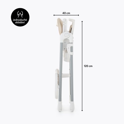Starostlivosť o životné prostredie, ktorú sme pri tvorbe tejto stoličky zohľadnili, nezatienila najdôležitejšie aspekty výrobku – bol totiž navrhnutý tak, aby čo najbezpečnejšie zlepšil každodenný život dieťatka aj rodičov. Stolička má všetky funkcie, ktoré uľahčujú každodenné kŕmenie: je možné ju ľahko zložiť a vyčistiť, má 5-bodové bezpečnostné pásy, nastaviteľnú opierku chrbta, nastaviteľnú opierku nôh, nastaviteľnú výšku, dve polohy pre podnos s hornou časťou, ktorú je možné umývať v umývačke riadu. Stabilná konštrukcia stoličky zaistí bezpečnosť vášho dieťaťa bez ohľadu na to, aké je aktívne alebo pohyblivé. Vysoko kvalitné prevedenie, premyslená konštrukcia, moderný a originálny dizajn a kompaktné skladanie sú nadčasové vlastnosti, ktoré zaistia pohodlie pre vaše dieťa od okamihu, keď sa naučia sedieť.