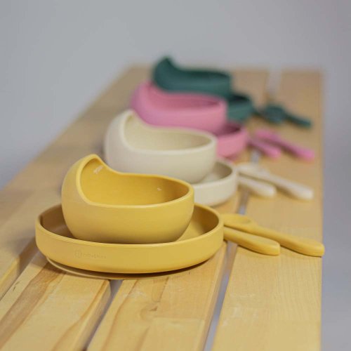 TAKE&MATCH séria TAKE what you need and MATCH as you like. Vyberte si výrobky, ktoré vaše dieťa potrebuje, a zlaďte ich farebne podľa svojich predstáv. Jedálenské sety sú k dispozícii vo farbách inšpirovaných najnovšími trendmi a skomponované tak, aby každá farba dokonale ladila s ostatnými. Môžete preto ľubovoľne kombinovať všetky prvky potrebné na prípravu bezpečného jedla pre vaše dieťa a vytvoriť si tak vlastnú jedinečnú kolekciu. Vďaka našej sérii sa kŕmenie vášho dieťaťa stane nielen veľmi jednoduchým, ale aj estetickým a príjemným. Silikónový tanier TAKE&MATCH s prísavkou Praktický tanier je celý vyrobený z potravinárskeho silikónu bez obsahu BPA. Vďaka tomu ho možno bezpečne používať na všetky potraviny, teplé aj studené, a jedlo v ňom je možné bez obáv ohrievať v mikrovlnnej rúre alebo uchovávať v chladničke. Vďaka odolnému a mäkkému silikónu sa nemusíte obávať, že sa tanier rozbije, odštiepi alebo zdeformuje - môžete ho nepoškodený používať dlhú dobu. Je vhodný pre deti od 6 mesiacov, ktoré sa zoznamujú s rozšírenou stravou a pre tie, ktoré sa už úspešne učia jesť samy. Zaoblený tvar uľahčuje dieťatku papanie. Pre pohodlie dieťaťa aj rodičov má tanier prísavku, ktorá priľne k povrchu stola alebo stoličky. Predpokladom fungovania prísavky je čistý povrch stola. Tanier je možné kombinovať s iným výrobkom zo série TAKE&MATCH v rovnakej alebo hodiacej sa farbe.