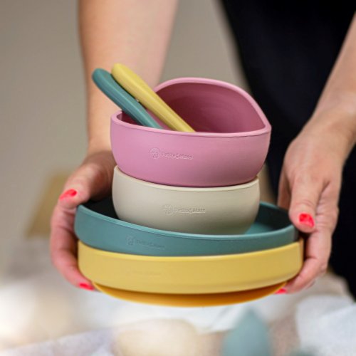 TAKE&MATCH séria TAKE what you need and MATCH as you like. Vyberte si výrobky, ktoré vaše dieťa potrebuje, a zlaďte ich farebne podľa svojich predstáv. Jedálenské sety sú k dispozícii vo farbách inšpirovaných najnovšími trendmi a skomponované tak, aby každá farba dokonale ladila s ostatnými. Môžete preto ľubovoľne kombinovať všetky prvky potrebné na prípravu bezpečného jedla pre vaše dieťa a vytvoriť si tak vlastnú jedinečnú kolekciu. Vďaka našej sérii sa kŕmenie vášho dieťaťa stane nielen veľmi jednoduchým, ale aj estetickým a príjemným. Silikónový tanier TAKE&MATCH s prísavkou Praktický tanier je celý vyrobený z potravinárskeho silikónu bez obsahu BPA. Vďaka tomu ho možno bezpečne používať na všetky potraviny, teplé aj studené, a jedlo v ňom je možné bez obáv ohrievať v mikrovlnnej rúre alebo uchovávať v chladničke. Vďaka odolnému a mäkkému silikónu sa nemusíte obávať, že sa tanier rozbije, odštiepi alebo zdeformuje - môžete ho nepoškodený používať dlhú dobu. Je vhodný pre deti od 6 mesiacov, ktoré sa zoznamujú s rozšírenou stravou a pre tie, ktoré sa už úspešne učia jesť samy. Zaoblený tvar uľahčuje dieťatku papanie. Pre pohodlie dieťaťa aj rodičov má tanier prísavku, ktorá priľne k povrchu stola alebo stoličky. Predpokladom fungovania prísavky je čistý povrch stola. Tanier je možné kombinovať s iným výrobkom zo série TAKE&MATCH v rovnakej alebo hodiacej sa farbe.