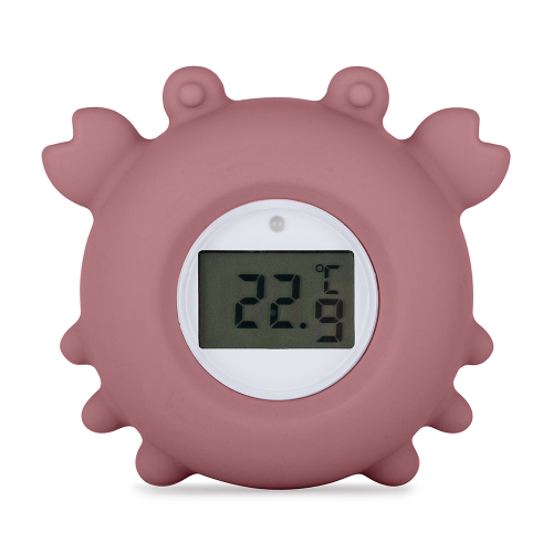 Digitálny silikónový teplomer Krab Caleb je praktické a priateľské riešenie na sledovanie teploty vody pri kúpaní vášho bábätka. Vďaka presnému digitálnemu meraniu v °C aj °F pomáha zaistiť, aby každý kúpeľ bol bezpečný a príjemný. Vďaka roztomilému tvaru kraba nie je kontrola teploty len jednoduchšia, ale zároveň prináša do každodenného kúpeľa zábavu a hravosť. Vyrobený zo 100% bezpečného silikónu, jemne pláva na hladine a je príjemný na dotyk. Teplomer je testovaný nezávislými výskumnými inštitúciami, čo zaručuje vysokú kvalitu a bezpečné používanie. Súčasťou balenia je vymeniteľná gombíková batéria pre dlhú výdrž.