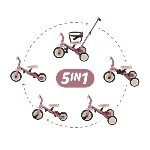 Multifunkčná trojkolka určená pre deti od 1,5 do 5 rokov alebo do 25 kilogramov. Je to nielen dopravný prostriedok na presun a učenie sa rovnováhy, ale aj spoločník pre rastúce dieťa počas mnohých vývojových fáz. Premyslené menenie sa bicykla sa prispôsobuje potrebám dieťatka podľa toho, ako sa vyvíjajú jeho motorické schopnosti. Spočiatku je to trojkolka s možnosťou asistencie rodiča, zatiaľ čo konečná verzia je štandardné koleso s pedálmi, bez akýchkoľvek ďalších podporných prvkov. Vďaka takým zmenám môžete pomôcť svojmu dieťaťu naučiť sa jazdiť na dvoch bicykloch.