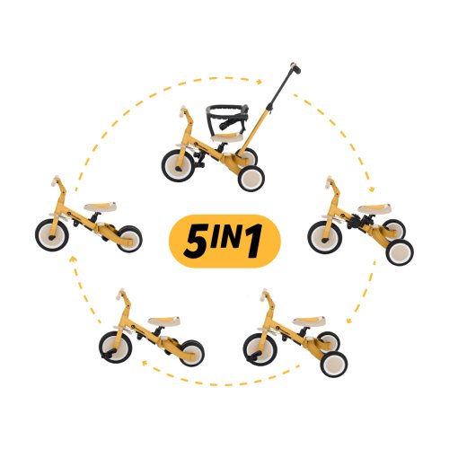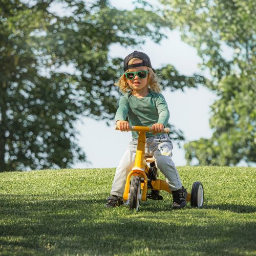 Multifunkčná trojkolka určená pre deti od 1,5 do 5 rokov alebo do 25 kilogramov. Je to nielen dopravný prostriedok na presun a učenie sa rovnováhy, ale aj spoločník pre rastúce dieťa počas mnohých vývojových fáz. Premyslené menenie sa bicykla sa prispôsobuje potrebám dieťatka podľa toho, ako sa vyvíjajú jeho motorické schopnosti. Spočiatku je to trojkolka s možnosťou asistencie rodiča, zatiaľ čo konečná verzia je štandardné koleso s pedálmi, bez akýchkoľvek ďalších podporných prvkov. Vďaka takým zmenám môžete pomôcť svojmu dieťaťu naučiť sa jazdiť na dvoch bicykloch.