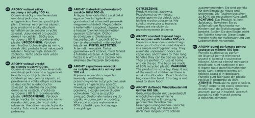 UPOZORNENIE! Výrobok nie je hračka. Uchovávajte ho mimo dosahu detí, pretože hrozí riziko udusenia. Vrecko nesplachujte do toalety. Toto vrecko nie je určené pre potraviny.