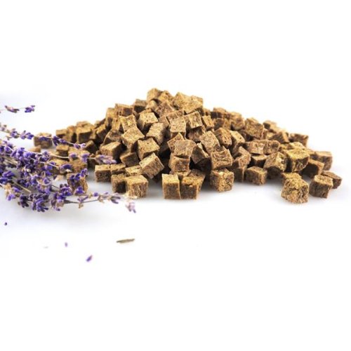 Veľkosť maškrty (cca): 1 × 1 cm Zloženie: 95 % králika, 5 % bylín (harmanček, mučenka, kvet chmeľu, medovka, zelený ovos, kvet nechtíka lekárskeho, sirôtka lekárska, levanduľa, valeriána lekárska). Analytické zložky: hrubý proteín 54 %, hrubý tuk 24,9 %, hrubý popol 7,2 %, hrubá vláknina 1,5 %. Kŕmny návod:
