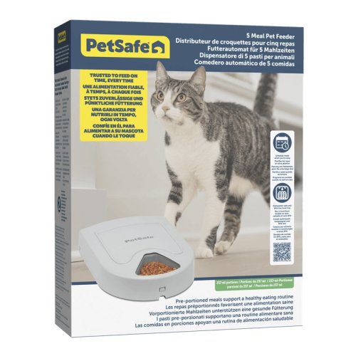 Batériové krmítko s LCD displejom na 5 porcií krmiva, maškrty či liekov. Pomocou digitálnych hodín si môžete naplánovať výdaj 5 porcií v jednom dni alebo ich rozložiť až na 5 nasledujúcich dní. Skvelý pomocník na kontrolu porcií (napr. pre miláčikov s nadváhou). Kŕmidlo má odnímateľný podnos s 5 priehradkami, z ktorých každá pojme 1 šálku (236 ml) suchého alebo polovlhkého krmiva. Čas kŕmenia si môžete vybrať s presnosťou na minútu. Po nastavení rozvrhu sa budú automaticky podávať každý deň v rovnakom čase. Keď krmítko naplníte, jedna porcia je okamžite k dispozícii. Keď príde čas na ďalšie jedlo, podnos sa otočí, čím Váš maznáčik získa prístup k ďalšej porcii. Pokiaľ má maznáčik tendenciu hltať, alebo ak chcete mu pomôcť pri udržiavaní ideálnej hmotnosti, použite PetSafe® 5-Meal Pet Feeder na naplánovanie menších porcií, aby zostal zdravý av dobrej kondícii.