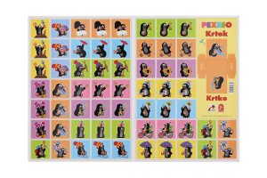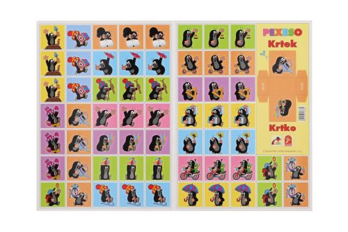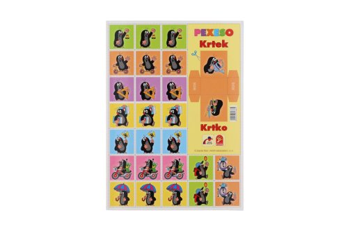 Pevný kartón s lesklou vodeodpudivou povrchovou úpravou, 60 kartičiek/20 trojíc/ veľkosť kartičiek 4 x 4 cm (š xd), na pexesoch pri titulnom obrázku umiestnený box na vystrihnutie pre možnosť vloženia vystrihnutých kartičiek.
