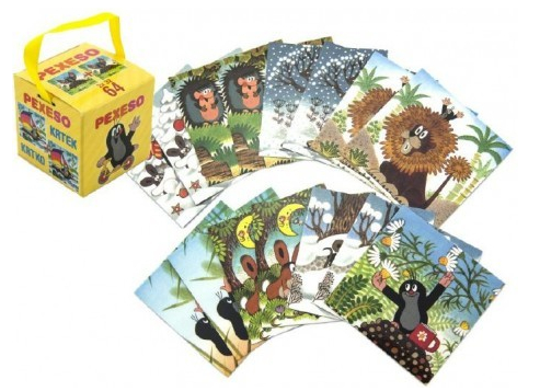 Klasická hra pre všetky vekové kategórie, rozvíjajúce pamäť a sústredenie. Cieľom hráčov je nájsť čo najviac rovnakých dvojíc. Kartičky sú vyrobené z kvalitného pevného kartónu, ktorý zaručuje dlhú životnosť. Obsahuje 32 obrázkových dvojíc v papierovej krabičke. Rozmery výrobku 6 x 6cm. Vhodné pre deti od 3 rokov. Pravidlá hry: Karty sa zamiešajú a rozložia lícom dole tak, aby žiadny z hráčov nepoznal rozloženie kariet. Hráči postupne otáčajú dvojicu kariet lícom nahor, aby ich videli aj ostatní hráči. Pokiaľ karty patria k sebe, hráč ich odoberie a otáča ďalšiu dvojicu. Pokiaľ karty k sebe nepatria, otočí ich späť lícom dole a pokračuje ďalší hráč v poradí. Hrá sa tak dlho, pokiaľ nie sú všetky karty rozobrané. Víťazom sa stane hráč s najväčším počtom nájdených dvojíc.