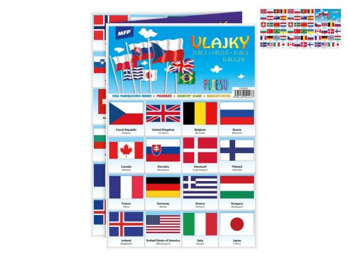 PEXESO je populárna detská stolová hra, ktorá nikdy neomrzí a zapojiť sa môžu aj dospelí. Pexeso - vlajky - je vhodné pre deti, ktoré sa chcú naučiť rozoznávať jednotlivé vlajky štátov a baví ich zemepis, 32 obrázkových dvojíc. Rozmer nerozstrihaného pexesa zloženého do zošita: 21 x 30 cm Vhodné od 3 rokov