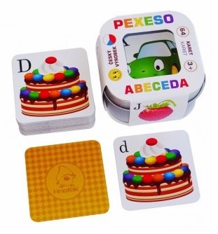 Originálne pexeso v malej plechovej krabičke, kde ku každému malému a veľkému tlačiacemu písmenku abecedy nájdete krásne ilustrovaný obrázok. Kartičky sú vyrobené z kvalitného kartového kartónu so špeciálnym kartovým lakom, ktorý zaručí naozaj dlhú životnosť kartičiek. Rozmery balenia 6 x 6 x 4 cm. Vhodné pre deti od 3 rokov.