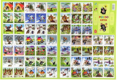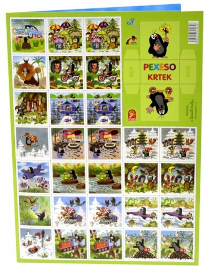64 kartičiek, veľkosť kartičiek 4 x 4 cm, materiál pevný, lesklý kartón s vodeodpudivou povrchovou úpravou, na prednej strane obálky umiestnená box na vystrihnutie pre vloženie vystrihnutých kartičiek, na výrobok boli udelené ocenenia "česká kvalita" a "bezpečná a kvalitná hračka"