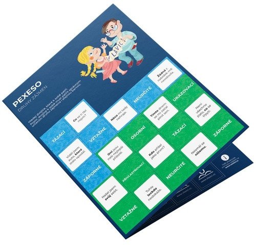 Didaktická známa hra pexeso do hodín slovenského jazyka aj pre domáce precvičovanie. Rozvíja slovnú zásobu, fantáziu, predstavivosť, pamäť, logiku a preberaný gramatický jav.