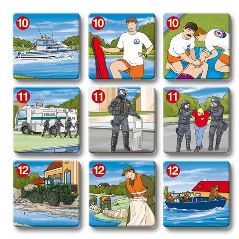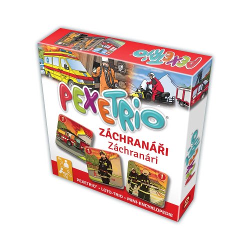 Pexetrio ZÁCHRANÁRI je didaktická a zábavná hra, v ktorej sa naučíš spoznávať rôzne zachranárske profesie, rozoznať ich typické odevy, techniku a nástroje, ktoré pracovníci používajú. Hľadaj rovnaké trojice kartičiek. Víťazí ten, kto nájde najviac trojíc. Pexetrio cvičí sústredenie a dobrú pamäť. Hra je ideálna ako rodinná hra, pri ktorej majú malí príležitosť zvíťaziť nad väčšími. Súčasťou balenia je aj hra Loto-trio Hra obsahuje: 3 x 12 kartičiek s obrázkami, dva herné plány pre hru Loto-trio a mini encyklopédiu s návodmi všetkých 9 herných variantov.
