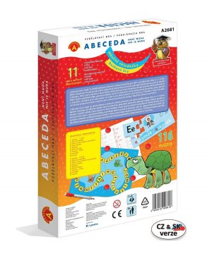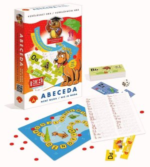„Abeceda nie je nuda“ je skvelá zábava a zároveň učebná pomôcka pre deti v predškolskom veku a prváčikov. Celkom 11 zábavných hier a aktivít pre deti od 4 do 8 rokov. Zábavný spôsob, ako si poradiť s abecedou, jej čítaním a písaním. Hra obsahuje fixku a mazaciu tabuľku, kde deti opakovane trénujú správny úchop pera a zdokonaľujú písanie písmeniek. Trénuje aj postreh a koncentráciu. Balenie obsahuje 163 dielov. Balenie obsahuje 29 sád puzzlí, ktoré znázorňujú jednotlivé písmenká abecedy. Každé puzzle sa skladá zo štyroch dielikov – s obrázkom, s jeho názvom a so zodpovedajúcimi tlačenými a písacími písmenkami. Bohaté varianty hry, počas ktorých treba rôzne usporiadať či vyhľadať jednotlivé dieliky. Pomáhajú deťom naučiť sa abecedu, ďalej ich učia rozpoznávať písmenká a ich poradie v abecede či vyhľadávať počiatočné písmenká v slovách a zároveň precvičujú pamäť a koncentráciu. Priložená stieracia tabuľka umožňuje opakovane písať a precvičovať naučené písmenká a zlepšovať jemnú motoriku. Deti sa môžu hrať samy alebo vo väčších skupinách. Je vhodné, aby sa hry spolu s deťmi zúčastnila dospelá osoba, ktorá bude ukazovať rôzne verzie hry a pomáhať deťom s ťažšími úlohami. Pokiaľ sa deti ešte len začínajú učiť abecedu, mal by dospelý pred začatím hry urovnať puzzle v abecednom poradí a čítať nahlas názov každého písmenka a slovo, ktoré je na obrázku. Ďalšie pomôcky žetóny, figúrka, farebná hracia doska a kocka zvyšujú rozmanitosť a zaručujú dobrú zábavu. Za víťazstvo v hre je udeľovaná medaila „Majster abecedy“. Ako hrať? V príručke nájdete 11 návodov na rôzne hry a aktity, pri ktorých deti načerpávajú potrebné znalosti a zručnosti. Vďaka nim sa zoznámi s písmami, ich písaním a významom. Trénujú ich používanie v bežných slovách maximálne zábavnou formou. 1 . PUZZLE ABECEDA (hra), 2. ABECEDNÁ SKLADAČKA (aktivita), 3. HÁDANKA (hra), 4. KTORÉ PÍSMENKO? (hra), 5. ČO JE TO? (aktivita), 6. PÍSMENKOM… (aktivita), 7. ZÁVOD (hra), 8. MENA (aktivita), 9. PÍSMENKOVÉ PEXESO (hra), 10. ZÁVOD (dosková hra), 11. MAJSTR ABECEDY (dosková hra). Balenie obsahuje: puzzle s písmenkami a obrázkami 116 ksstieraciu tabuľku na tréning písmeniek 1 ksfixku s koncovkou na mazanie 1 kshraciu dosku 1 kshraciu figúrku 1 kshraciu kocku 1 ksžetóny 40 ksmedaily Majster ABECEDY 1 ksčeský a slovenský návod prváčikmi trénuje tiež postreh, pamät a koncentráciu zábavné zoznámenie s písmenkami abecedyučenie správneho úchopu pera a jemnej motoriky