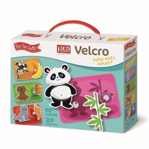 Hranie s Velcro trénujte koordináciu ruka-oko, jemnú motoriku a naučte veľa nového o mnohých zvieratkách a ich živote. Úlohou detí je priradiť k domácim a exotickým zvieratkám jedno z jedál, ktorým sa zvieratko v prírode živí. Čo je vo vnútri?Sada obsahuje 10 pružných plastových doštičiek so suchým zipsom a 20 samostatných dielikov, ktoré umiestnite na doštičky pomocou suchého zipsu. Vďaka tejto vychytávke jednotlivé diely len tak nespadnú abudú držať na správnom mieste. Všetky časti sú vyrobené z odolného, ale tenkého plastu so špeciálnou povrchovou úpravou, ktorá je deťom príjemná na dotyk. Ako hrať? Berte jednotlivé dieliky jeden po druhom a rozprávajte deťom čo na nich je. Potom vezmite doštičku s obrysmi predmetov a vyzvite dieťa, aby našlo správny predmet pre každý obrys a pripevnilo ho pomocou suchého zipsu na správne miesto. Hlavné vlastnosti: zlepšuje motorické schopnosti trénuje vyjadrovanie a hovorenú reč rozvíja myslenie a pamäť upevňuje udržanie pozornosti