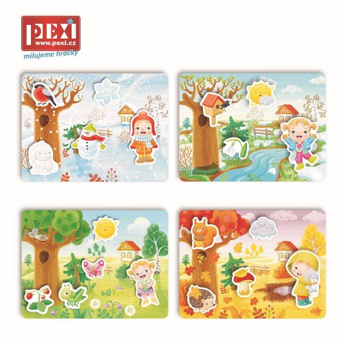 Zistite ako to fuguje v prírode počas celého roka a naučte sa viac o ročných obdobiach. Trénujte rozprávanie, jemnú motorikua koordináciu ruka-oko. Kedy robíte snehové gule? Kedy môžete ísť do lesa zbierať lesné ovocie a huby? Čo je vo vnútri?Sada obsahuje 4 veľké pružné plastové doštičky so suchým zipsom a 20 samostatných dielikov, ktoré umiestnite na doštičky pomocou suchého zipsu. Vďaka tejto vychytávke jednotlivé diely len tak nespadnú a budú držať na správnom mieste. Všetky časti sú vyrobené z odolného, ale tenkého plastu so špeciálnou povrchovou úpravou, ktorá je deťom príjemná na dotyk. Ako hrať? Berte jednotlivé dieliky jeden po druhom a rozprávajte deťom čo na nich je . Potom vezmite doštičku s tieňmi predmetov a vyzvite dieťa, aby našlo správny predmet pre každý obrys a pripevnilo ho pomocou suchého zipsu na správne miesto. Hlavné vlastnosti: zlepšuje motorické schopnosti trénuje vyjadrovanie a hovorenú reč rozvíja myslenie a pamäť upevňuje udržanie pozornosti