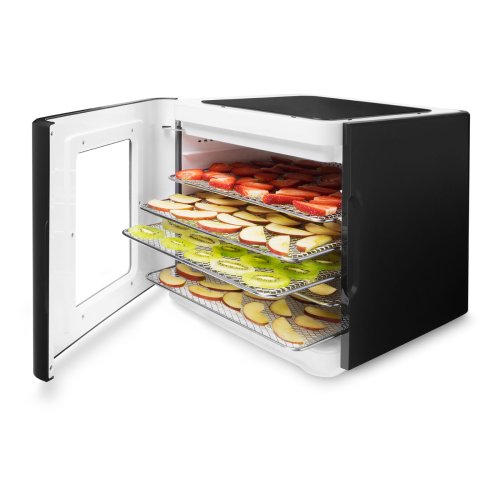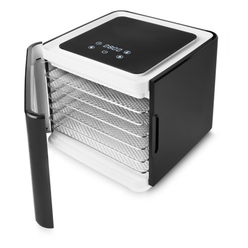 Zverte úlohu uchovania potravín ako ovocia, zeleniny, mäsa, byliniek a ďalšieho našej sušičke Philco PHFD7067. Perfektného výsledku dosiahnete vďaka silnému motoru, ktorý rozprúdi teplý vzduch rovnomerne celým vnútorným priestorom sušičky, a vy sa nebudete musieť starať úplne o nič okrem počiatočného nastavenia doby prípravy a teploty. Vďaka horizontálnemu prúdeniu vzduchu je teplota vo všetkých úrovniach rovnaká a vy sa nemusíte obťažovať prehadzovaním jednotlivých plat počas procesu dehydratácie. Sušenie patrí medzi najzdravší spôsob konzervovania potravín s 97% mierou retencie vitamínov a minerálov. 6 nerezových plat o veľkosti 30x25 cm zaistí dostatočný priestor pre vaše sušenie. Súčasťou sušičky je potom aj vyberateľná tácka na zvyškovú vodu a prípadný neporiadok, ktorý vznikne na dne počas sušenia. Je jednoduché ho vybrať, umyť a opäť umiestniť na ďalšiu várku. Nadčasový dizajn a moderná antracitová farba sa bude vynímať vo všetkých interiéroch. Jednoduché dotykové ovládanie a prehľadný displej umožní každému obsluhovať tento spotrebič.
