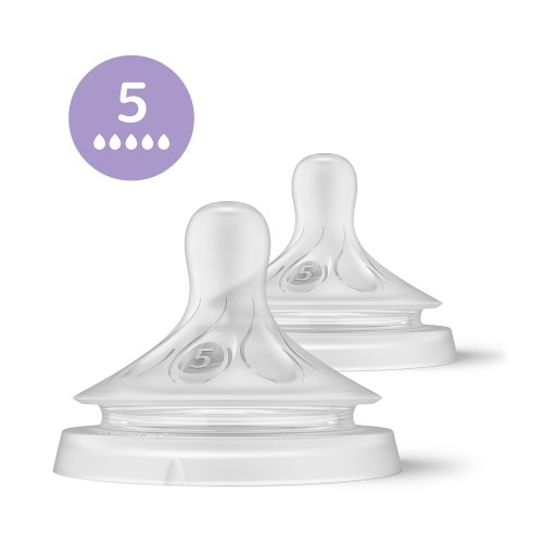 Nájdite ten správny prietok cumlíka Každé dieťa sa kŕmi inak a vyvíja sa vlastným tempom. Navrhli sme niekoľko rýchlostí prietoku, aby ste mohli pre vaše dieťa nájsť ten správny a fľašu si tak prispôsobiť. Všetky cumlíky Natural Response sú vyrobené z mäkkého silikónu.