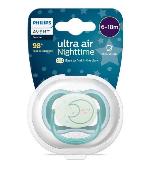 Dlho svieti v tme Stred cumlíka Ultra Air svetielkuje, takže ho ľahko nájdete aj po tme.