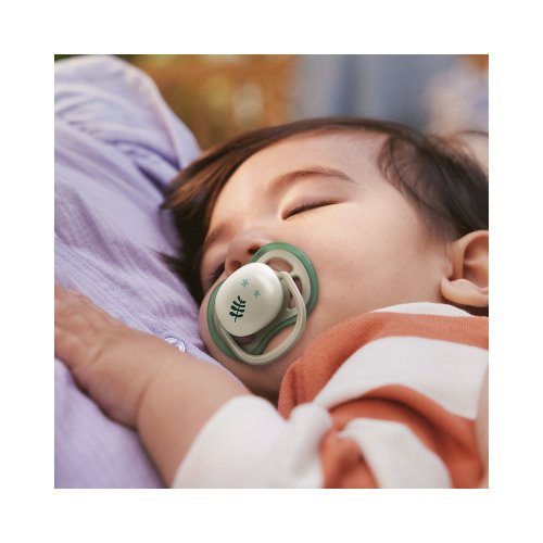 Umožňuje pokožke vášho dieťatka dýchať Jednoduché nájdenie v tme Upokojuje a umožňuje dýchanie vďaka veľkým vzduchovým otvorom. 9 z 10 rodičov súhlasí, že cumlíky Philips Avent Ultra air sú pre dieťatko pohodlné.** A svieti v tme, takže pohodlie a úľava sa ľahko hľadá. Teraz z 80 % z rastlinných materiálov.* Vytvorené pre pohodlie • Veľmi veľké ventilačné otvory umožňujú pokožke dieťaťa dýchať • Ortodontický cumlík pre prirodzený vývoj zubov a ďasien • Obľúbené u bábätiek, 98% úspešnosť prijatia cumlíka*** Praktické, bezpečné a teraz ešte ekologickejšie • Ekologickejšie, pretože obsahuje 80 rýchlu a ľahkú hygienu Váš nočný spojenec • Podporuje spánkový režim pre zdravý vývoj dieťaťa • Svieti v tme dlho po zhasnutí svetiel Veľmi veľké ventilačné otvory Otvory v kotúči okolo cumlíka umožňujú pokožke vášho dieťaťa dýchať a udržujú ju suchšie pre maximálne pohodlie. Ortodontická silikónová násoska Naše ortodontické cumlíky sú navrhnuté z mäkkého silikónu, ktorý podporuje prirodzené pohyby ústnych svalov a pomáha znižovať riziko chybného zhryzu. Úzky krčok cumlíka je navrhnutý tak, aby znižoval tlak medzi jazykom a poschodím. Cumlíky Philips Avent Ultra sú nezávisle akreditované Nadáciou pre zdravie ústnej dutiny (Oral Health Foundation). Sú vyrobené zo 100% z potravinárskeho silikónu, sú odolnejšie a vydržia dlhšie ako gumové (latexové) cumlíky. Neobsahujú BPA, BPS, ftaláty, PVC polycyklické aromatické uhľovodíky. 98% úspešnosť prijatia cumlíka Náš textúrovaný silikónový násoska je navrhnutý tak, aby napodobňoval pocit mamičkinho prsníka. Keď sme sa rodičov spýtali, ako ich deti na naše cumlíky reagujú, v priemere 98 % z nich odpovedalo, že ich bábätko cumlíky Philips Avent Ultra prijíma. Podporuje spánkový režim 8 z 10 rodičov hovorí, že cumlíky Philips Avent Ultra pomáhajú ich dieťatku zaspať.** Svieti v tme Kryt cumlíky jemne svieti v tme. Vďaka tomu cumlík svojho dieťatka ľahšie nájdete, keď je zhasnuté. 80 % rastlinných materiálov* Udržateľnejšie voľby vám umožňujú poskytovať najlepšiu starostlivosť s menším dopadom na planétu. Kompletný rad Philips Avent ultra zahŕňa cumlíky a sterilizačné puzdrá vyrobené z 80 % rastlinných materiálov.* Sterilizačné a prenosné puzdro Prenosné puzdro slúži zároveň ako sterilizátor, takže cumlíky sú vždy pripravené, keď ich potrebujete. Stačí pridať vodu a 3 minúty zahrievať v mikrovlnnej rúre pre ľahkú sterilizáciu, pričom sa vyprodukuje až o 50% menej emisií CO2.***