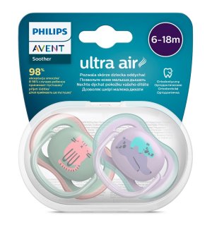 Všetky cumlíky AVENT sú silikónové. Silikón je bez chuti a zápachu, cumlíky majú dlhšiu životnosť. Vždy používajte cumlík, ktorý svojou veľkosťou zodpovedá veku dieťaťa.