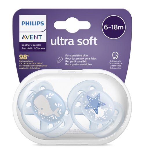 Ortodontický, stlačiteľný a symetrický násoska AVENT rešpektuje prirodzený vývoj ďasien, zubov a zubného poschodia dieťaťa aj v prípade, keď sa cumlík v ústach dieťaťa otočí. Nové cumlíky Ultrasoft ponúkajú bábätkám ešte väčší komfort. Tieto cumlíky majú viac otvorov v kotúči, ktoré zaisťujú väčšiu cirkuláciu vzduchu a predchádzajú hromadeniu slín za kotúčom. Satie bábätka upokojuje. Rovnako ako mnoho ostatných rodičov pred vami zistíte, že používanie cumlíka v okamihoch, keď všetky metódy vedúce k utíšeniu dieťaťa zlyhajú, je jediný spôsob, aby sa vaše bábätko utíšilo av kľude odpočívalo. Platí to pred spaním aj kedykoľvek inokedy. Bábätká so cumlíkom pokojnejšie spia, menej sa v spánku pohybujú a predovšetkým zostávajú ležať na chrbte, čo je odporúčané pediatrami. Používanie cumlíka zmenšuje závislosť bábätka na fľaši, znižuje možnosť poškodenia zubov a môže znížiť riziko dentálnych problémov v neskoršom veku v porovnaní s dlhodobým cmúľaním palcov, ktoré vytvára nevhodný tlak na poschodie a predné zuby.