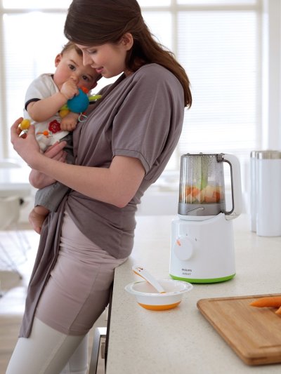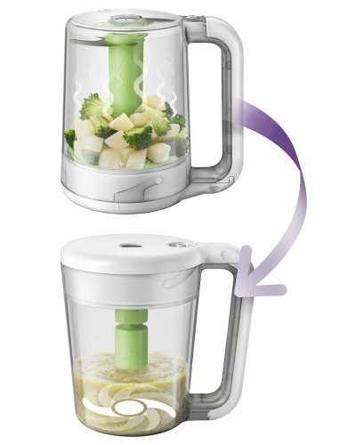 Kombinovaný parný hrniec a mixér Philips AVENT umožňuje ľahko pripraviť zdravé domáce detské jedlo: Najprv uvarte v pare ovocie, zeleninu, rybu či mäso a potom jednoducho nádobu zdvihnite, prevráťte a urobte mixovanie. Jedlo nie je nutné nikam prenášať!